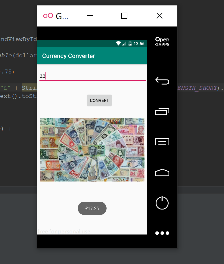 Then I used toast to display the conversion to pounds at the bottom of the screen.