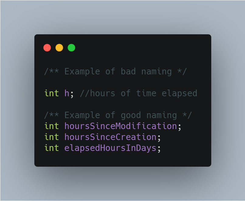 Following some of these rules and asking yourself the important questions about your code will help get you thinking about what and why you are naming things and keeping the code understandable for all, saving you many headaches in the future. Happy coding!
